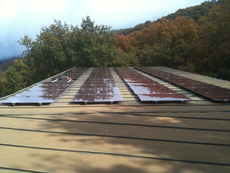 El excedente de los paneles, si lo hubiera, en invierno se destina, de forma automática a unas resistencias para apoyar el suelo radiante, además de alimentar unos rediadores eléctricos de bajo consumo. Mientras que en verano ese excedente se destinará a la depuración de la piscina, o en alimentar un aire acondicionado.