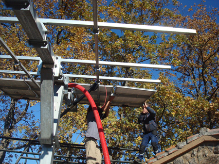 Se proyecto la colocación de un seguidor solar de dos ejes. El diario automático, y el estacional, manual.
